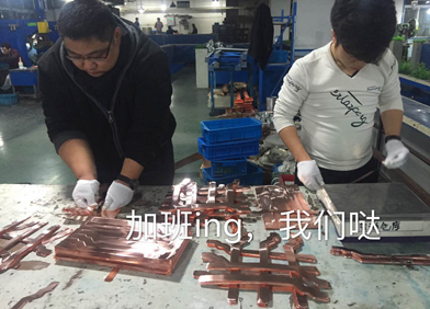 現(xiàn)在是2017年12月18日,星期一晚上23點(diǎn),天氣還是比較寒冷的,但是我們金橋銅業(yè)的小伙伴們還在擼起袖子加班生產(chǎn)新能源汽車銅箔軟連接,絲毫感覺(jué)不到寒意,反而有點(diǎn)熱的要命。